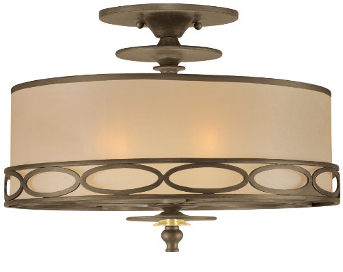 !±8± Crystorama 9603-AB Eclipse Collection 3-Light Semi-Flush, Antique Brass Finish with Light Gold Semi Sheer Shade
